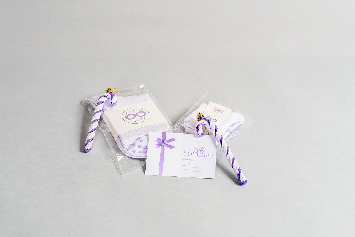 A Toddler Yoga Christmas Gift Set including a term of Toddler Yoga and a set of Adult and Toddler Grip Socks